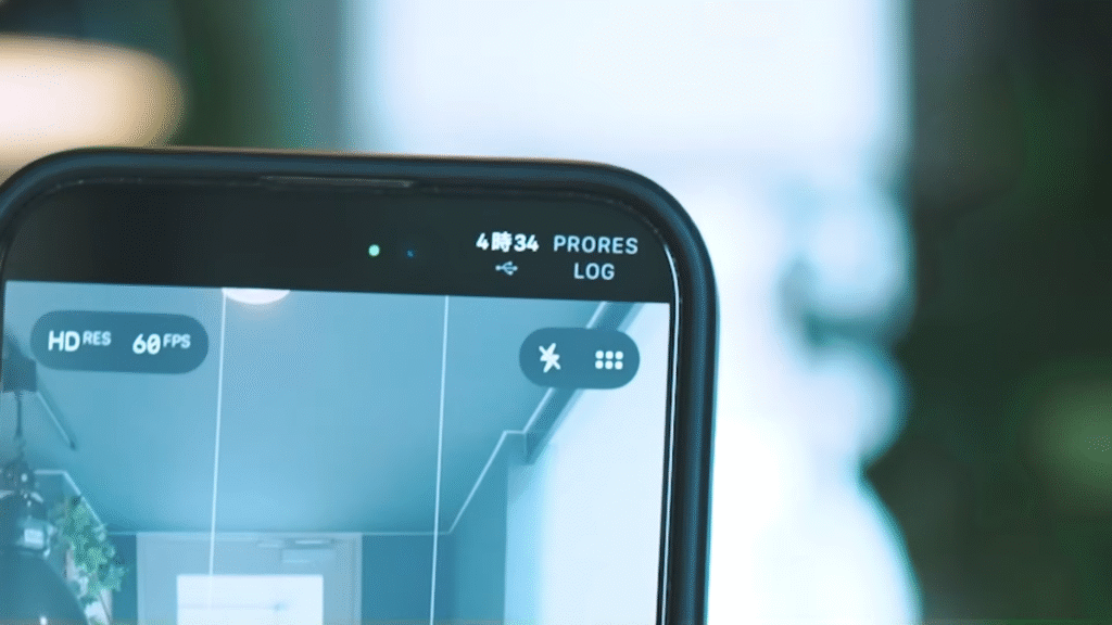 iPhone 15 ProなどのProRes Log撮影モードでは、Type-Cケーブルを挿すだけで自動的に外部SSDに保存される。